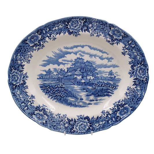 Vintage Blue and White Oval Stoneware China Plater