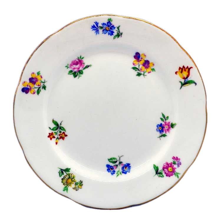 - Floral tulip pansy cornflower marigold buds on white translucent porcelain