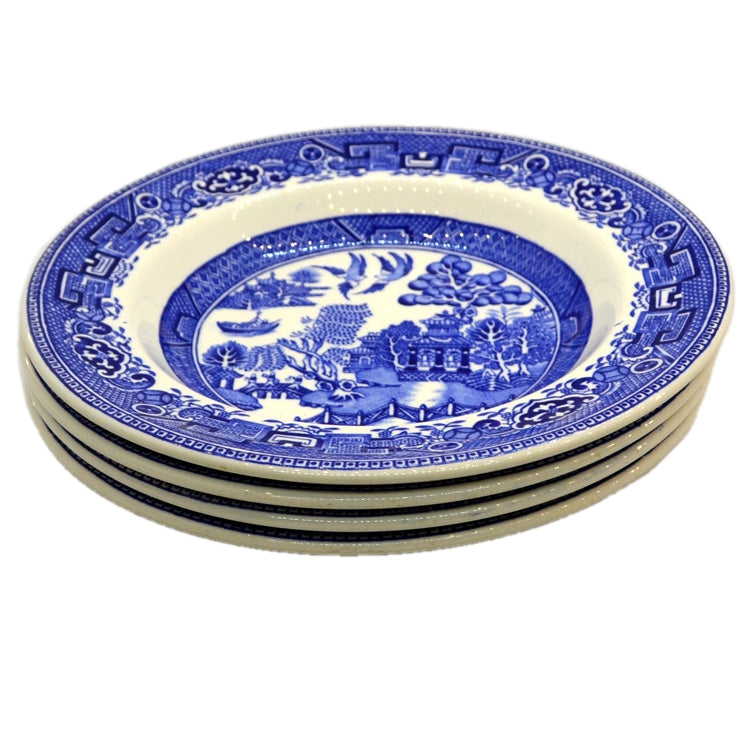 Vintage Alfred Meakin Old Willow pattern china soup bowls.