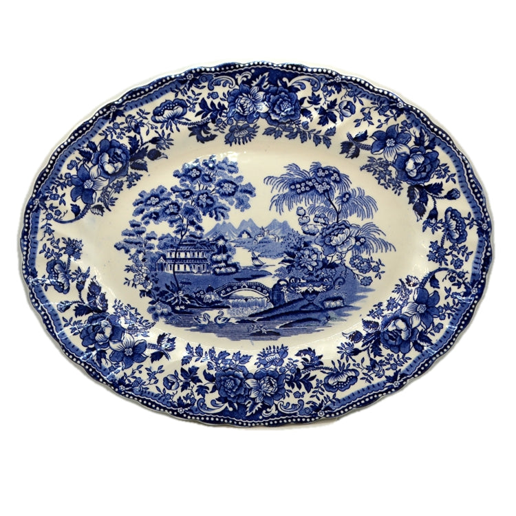 Myott Tonquin Blue and White China 14.5-Inch Serving Plate c1950