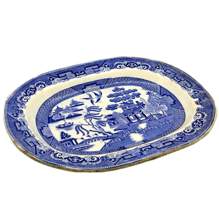 Antique Blue and White Warranted Stone China Willow Pattern Platter