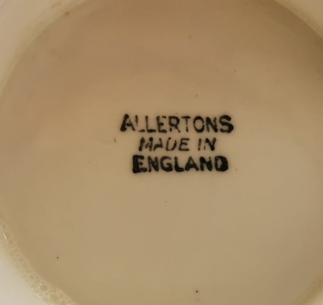- Full Allertons made in England china marks and some some marked with decorators brush shaping marks