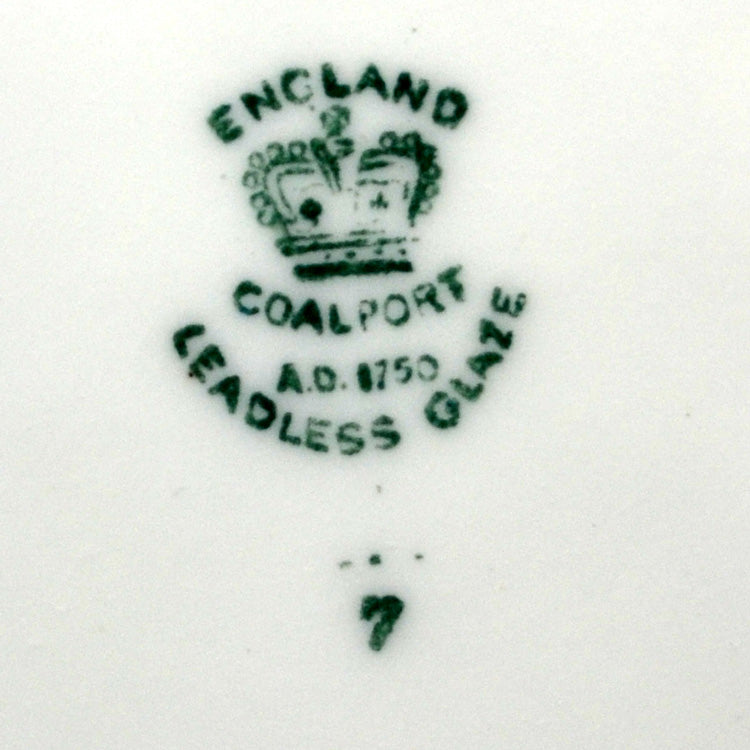 - Antique Green Coalport crown England factory marks with Leadless glaze