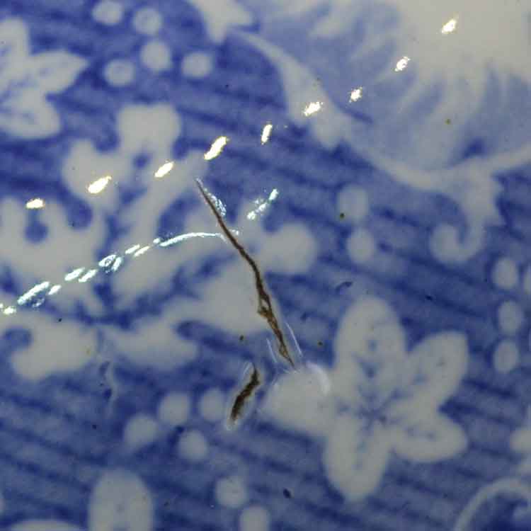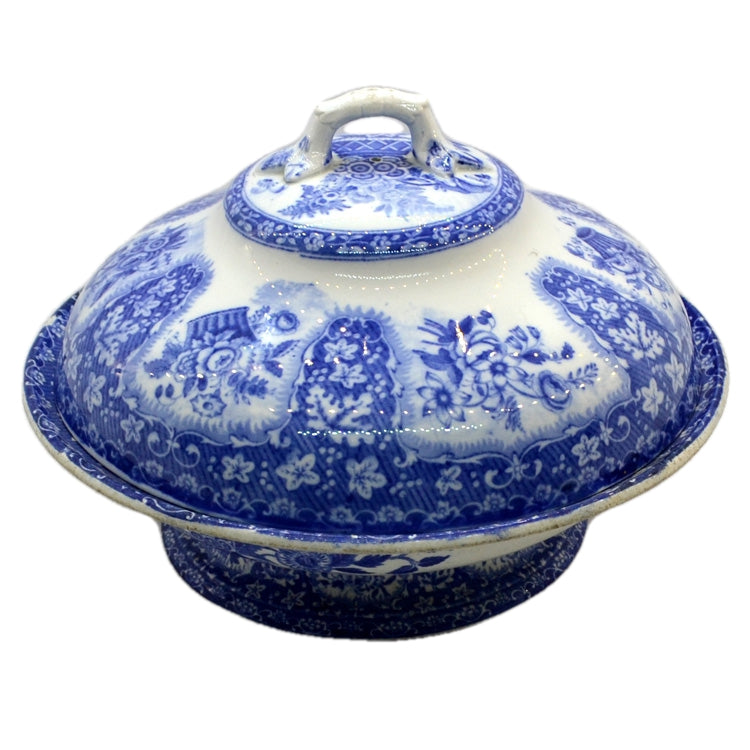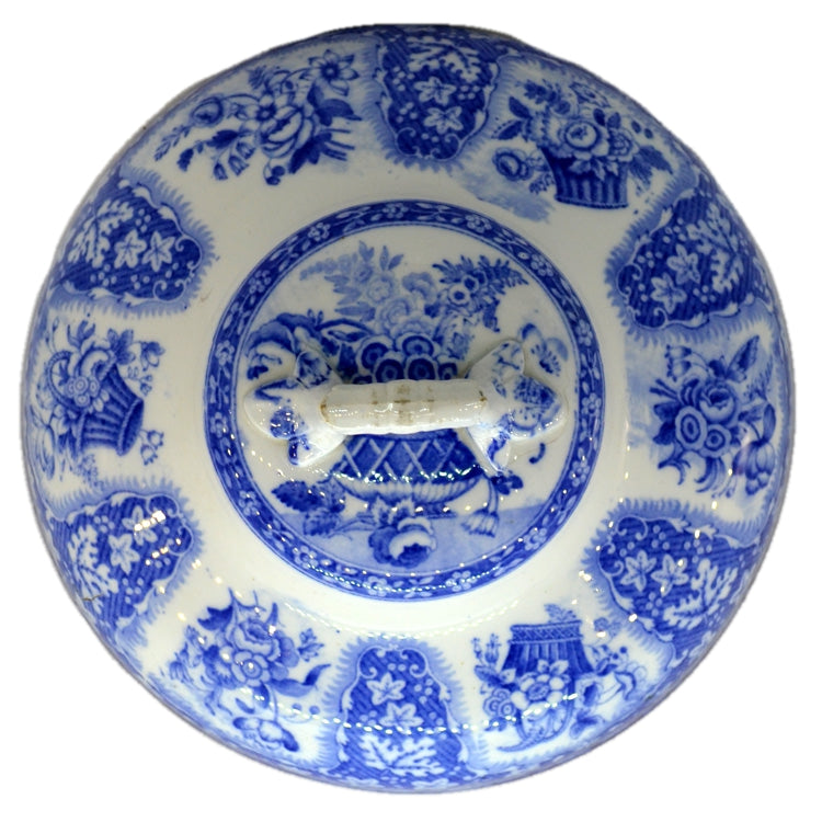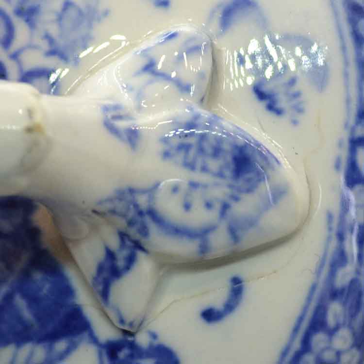 - Condition notes. Please read 1 small firing crack around the base of one side of the lid handle, all antique and stable (no repairs) Further firing crack on side of domed lid as shown. A small area of transfer missed on the rim of the base which is over-glazed and not a chip. See Graphics showing these original manufacturing issues.