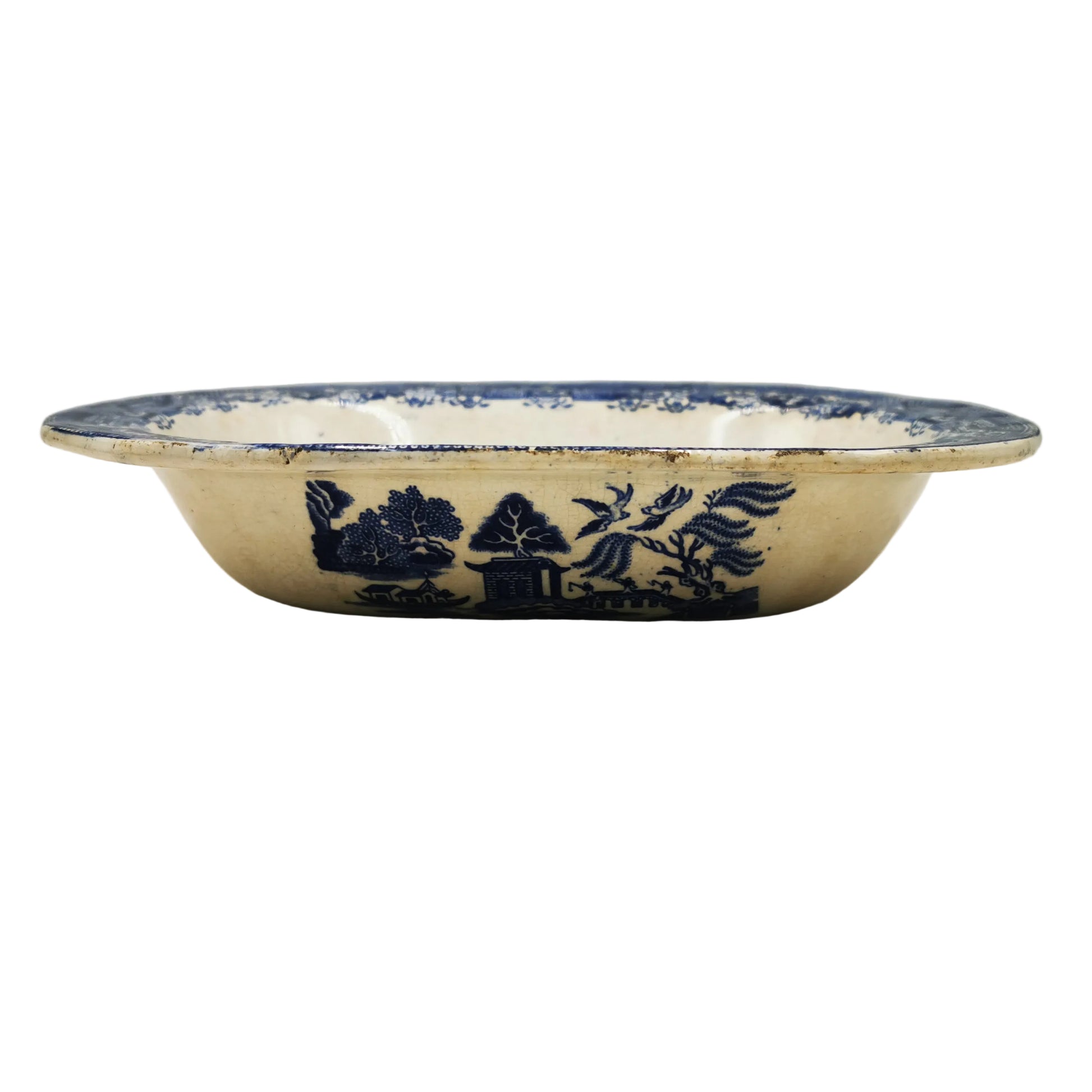 - Superb antique medium round rectangular deep vegetable bowl in davenport Willow blue and white antique Willow ironstone china.