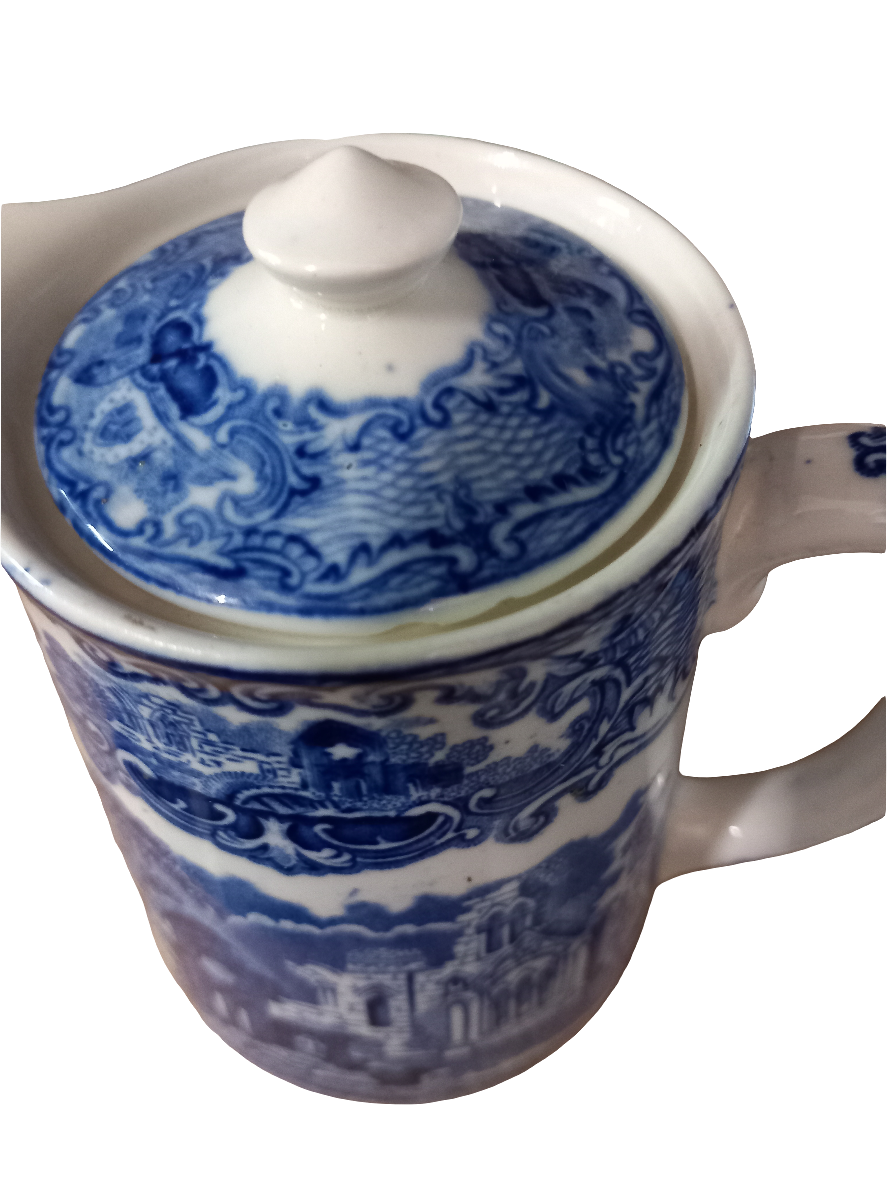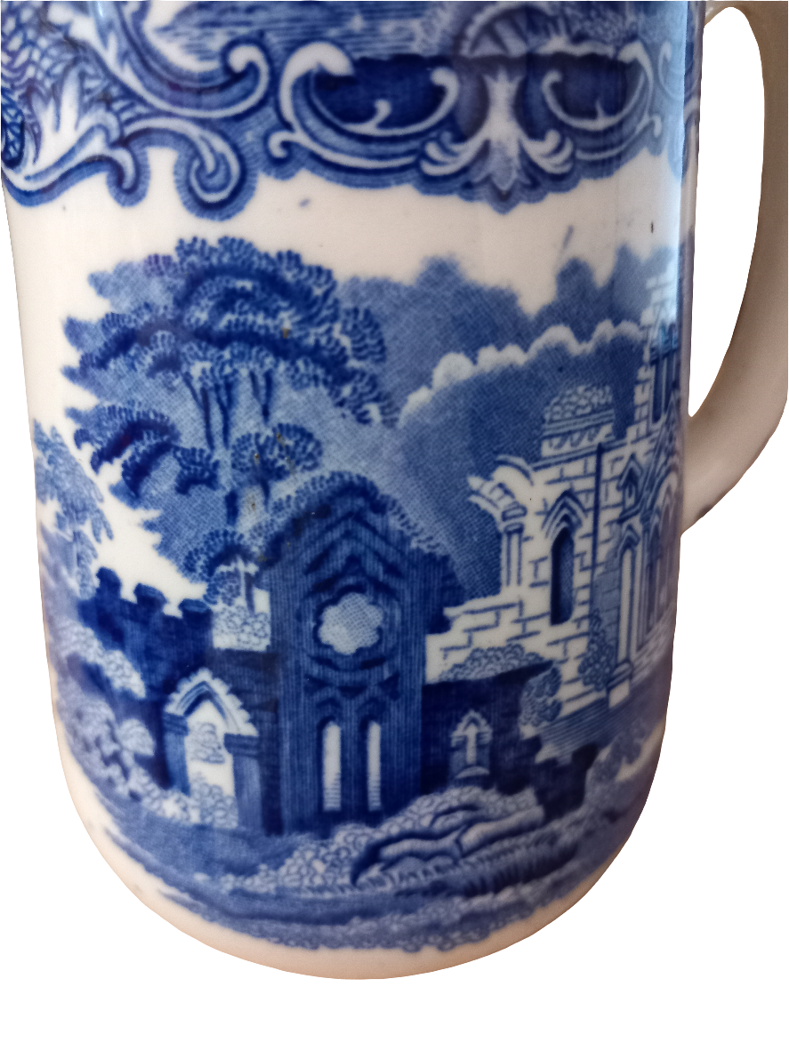 - The jug has the Abbey 1790 pattern on it. The blue colour of the pattern really stands out against the white background.