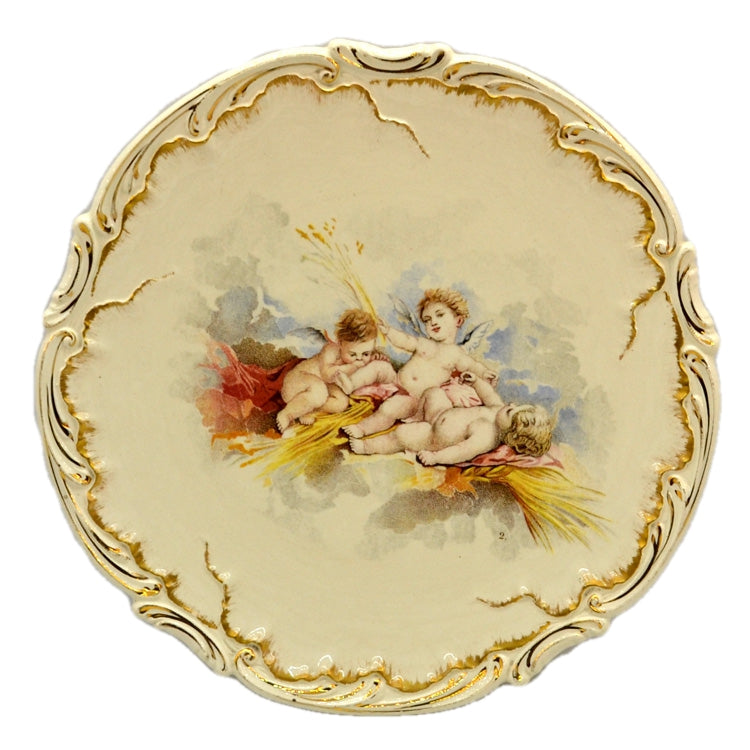 Beautiful antique cherub china plate by Utzschneider and Company, Sarreguemines.