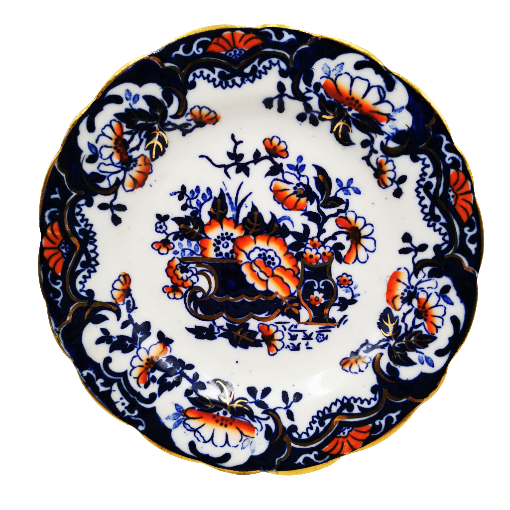 - Imari design with cobalt blue and gilt.