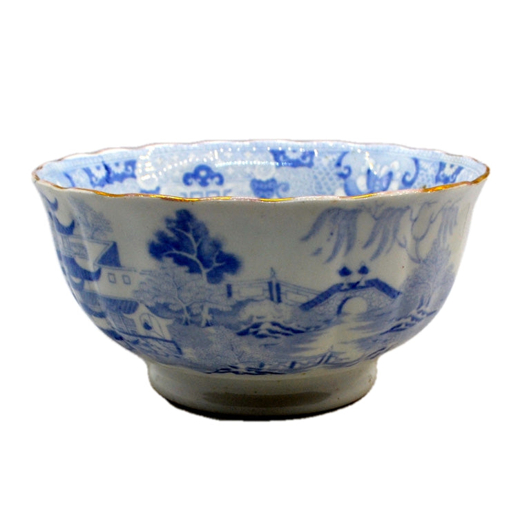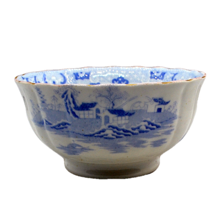 Antique Blue and White Willow Two Temples China Sugar Bowl c1840