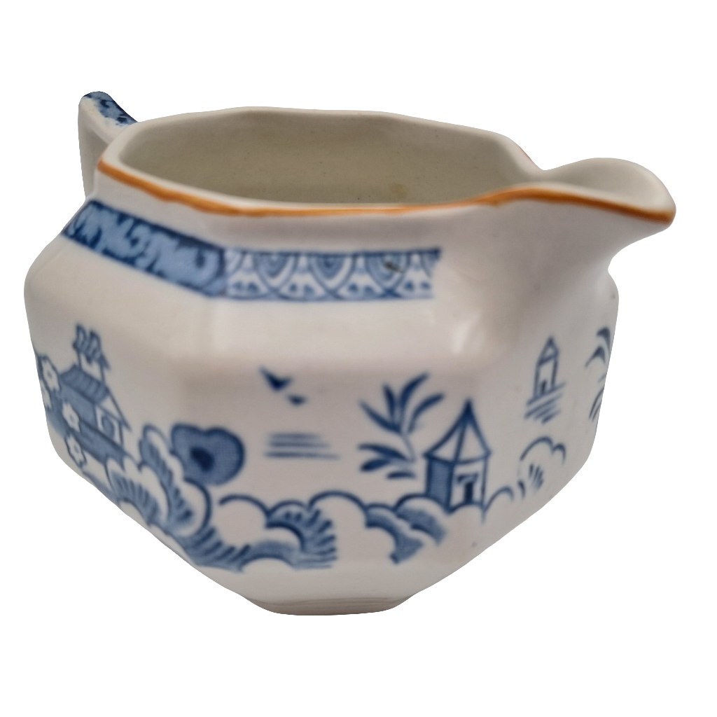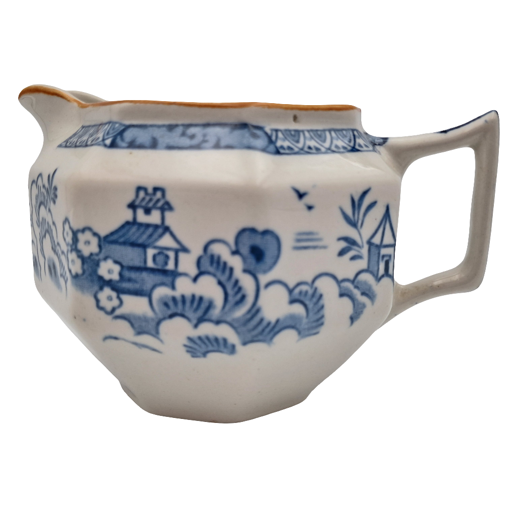 Antique Woods Ware Blue and White Alva Pattern Octagonal Creamer Jug