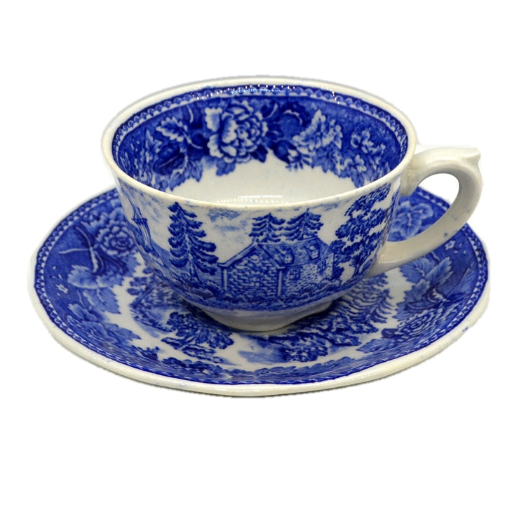 Vintage Blue and White Landscape Pattern Ironstone China Teacup by Arabia