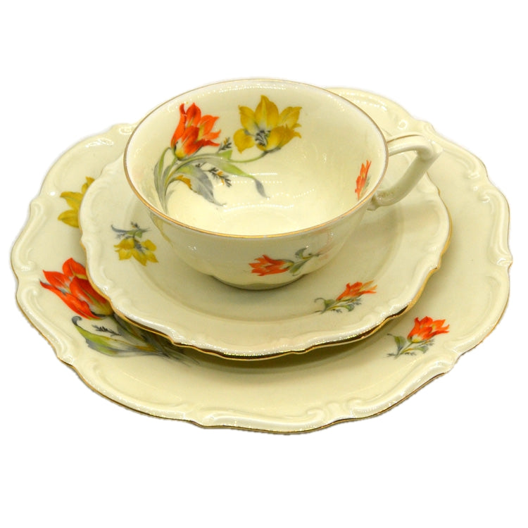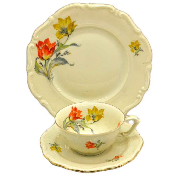 Carl Tielsch Altwasser Porcelain Floral China Teacup Trio 1937