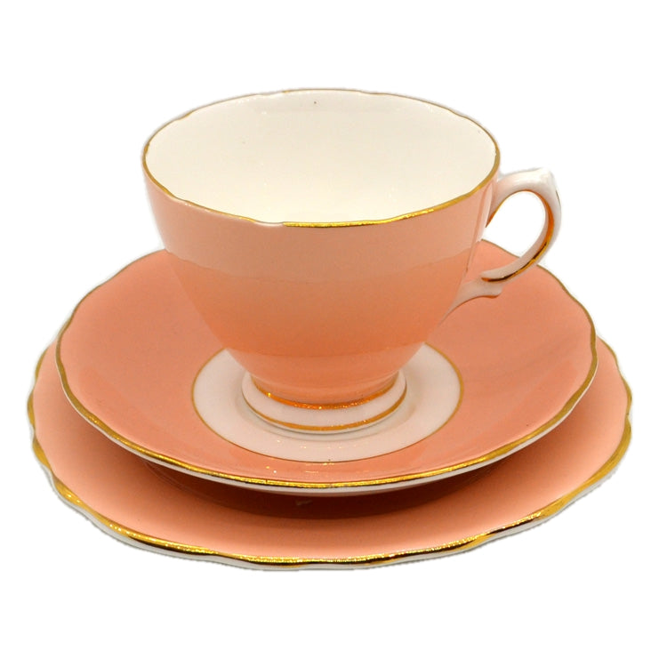 Late Colclough bone china 1117 buff pink Harlequin Ballet Saucer and Side Plate with Free teacup
