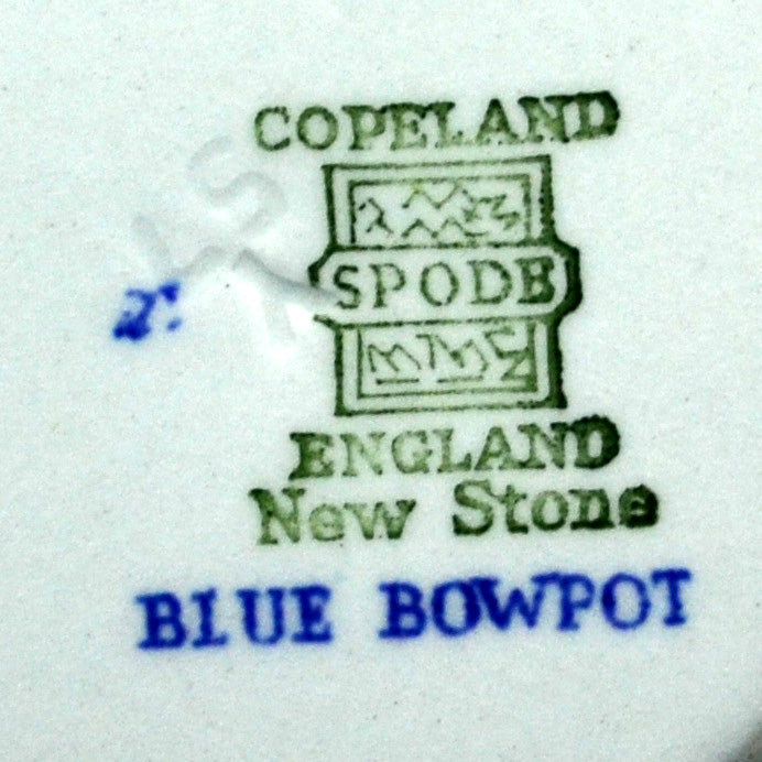 - Copeland Spode New Stone China Made in England Blue Bowpot pattern