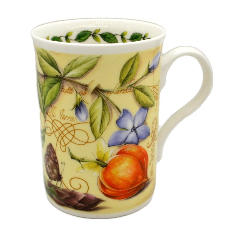 - Porcelain straight walled mug with autumnal botanical decoration and inner rim garland detailing.