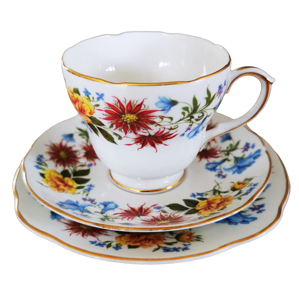 Vintage 1960s Duchess China Floral pattern 856 Teacup saucer and side plate
