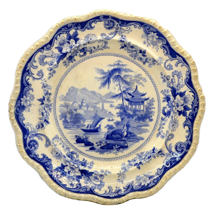 Elkin Knight & Bridgwood Canton Views Blue and White China Plate 1827-1840