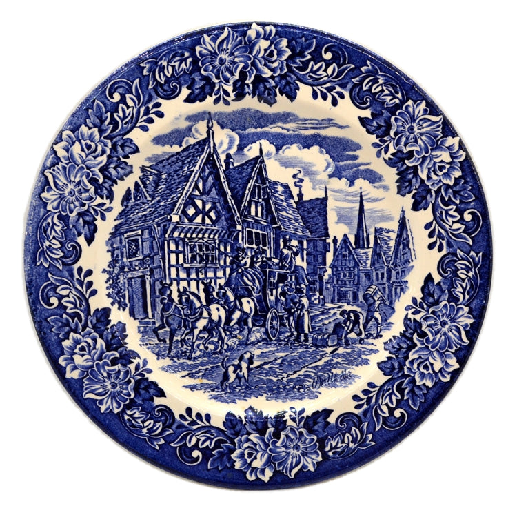 English Ironstone Tableware W N Mellor Coaching Scenes Blue and White China Dinner Plate