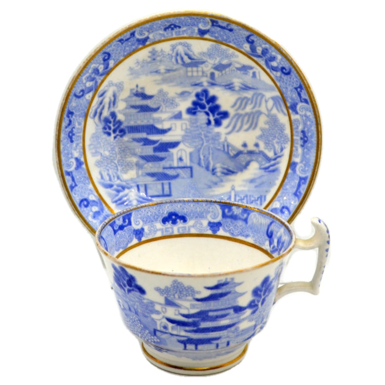 Spode Antique Porcelain China Two Temples or Broseley pattern Cabinet Cup and Saucer