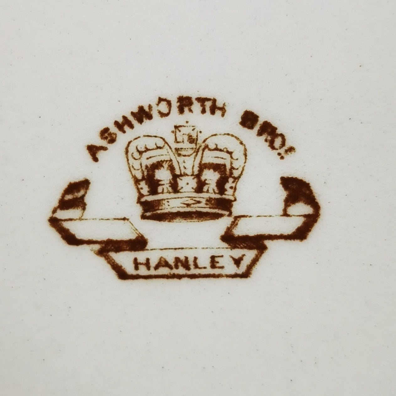 - This early piece has Ashworth printed crown and banner marks hand applied B9178 decorators marks