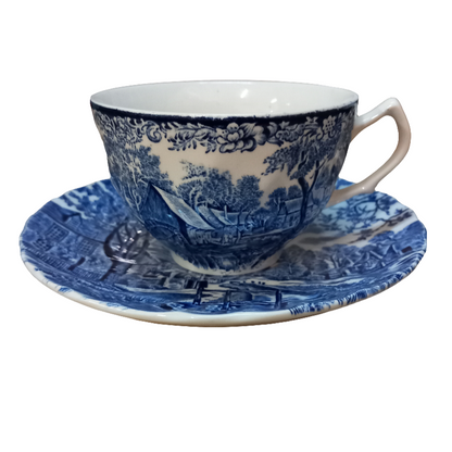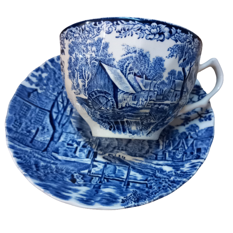 Johnson Bros Blue and White China Mill Stream Tea Cup & Saucer