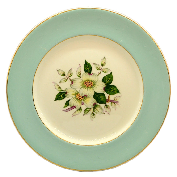 Vintage Johnson Brothers Pareek in rare Pistachio rim and Snow White pattern china.