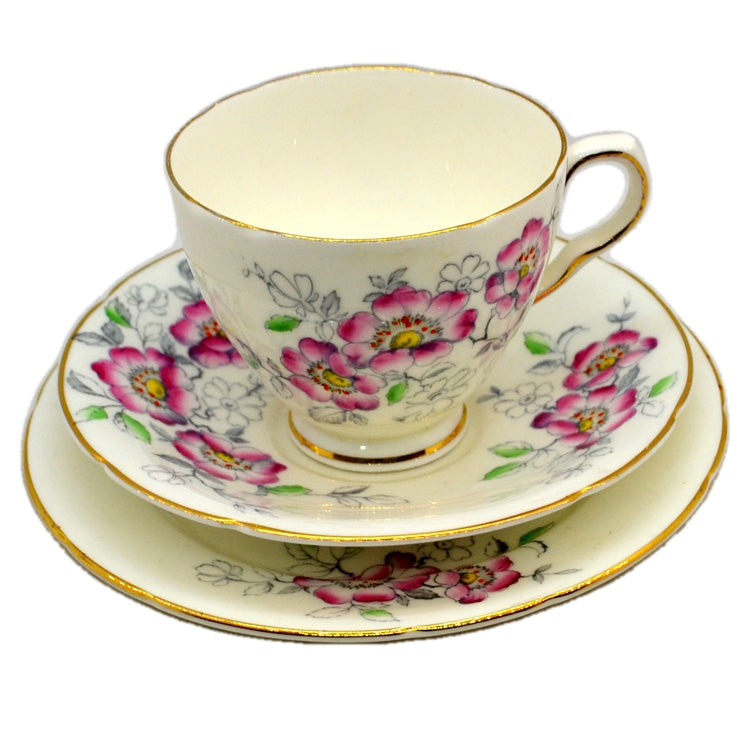 Old Royal Floral Bone China Cherry Blossom Teacup Trio