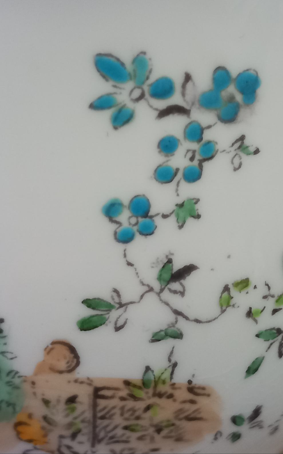 - Beautiful, country garden scene with hand painted Holly hock flowers in an array of pretty colours colours. There is an alternating, up and down, half square pattern