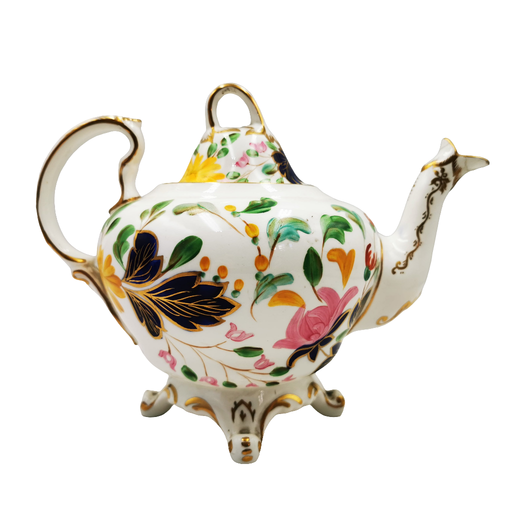 Repaired Antique Charles Allerton Hand Painted Bone China 4558 Teapot