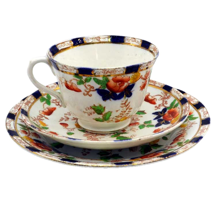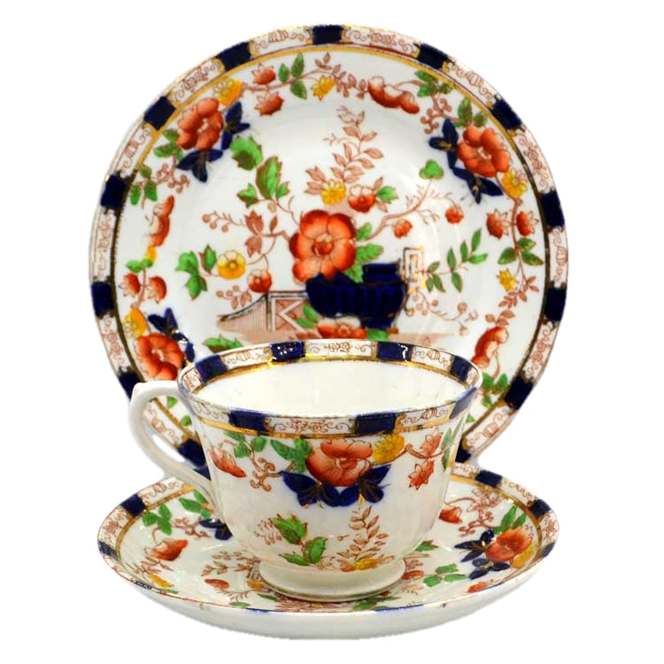 - Hand coloured porcelain transfer ware imari style with gilt detailing