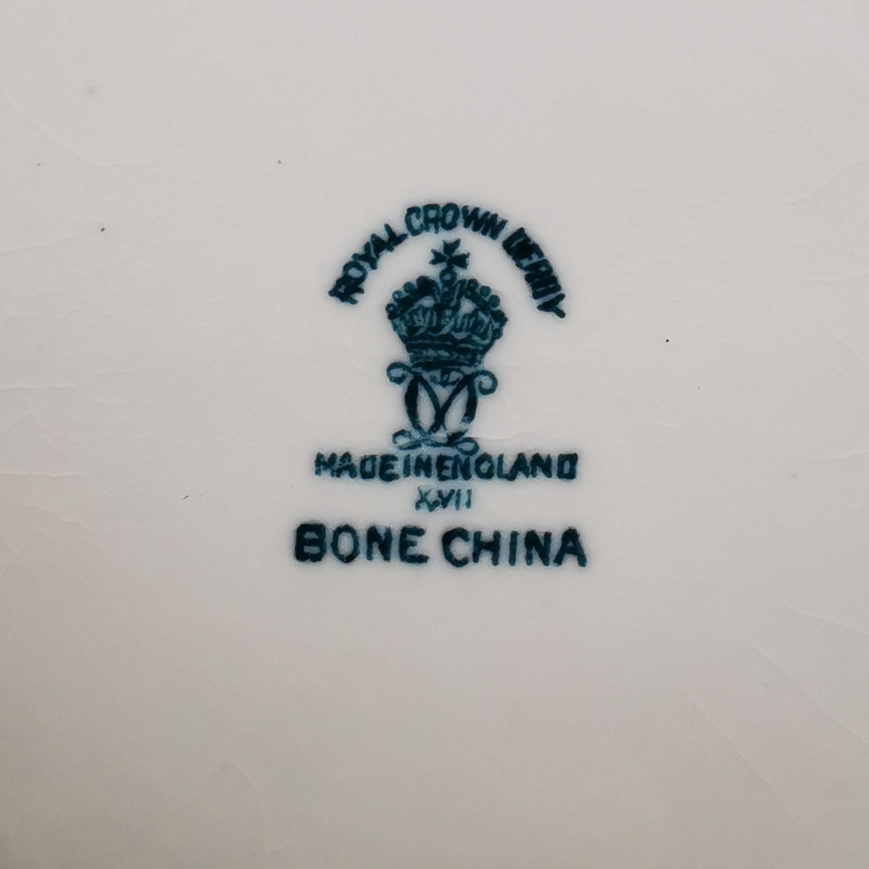 - Green Royal Crown Derby English Bone China XVII factory marks