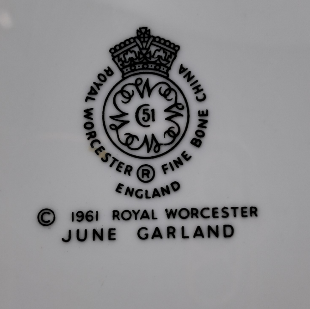- Beautiful pattern of pastel colours, including pink, lilac and yellow flowers with green and lilac leaves finished with a gilt rim.