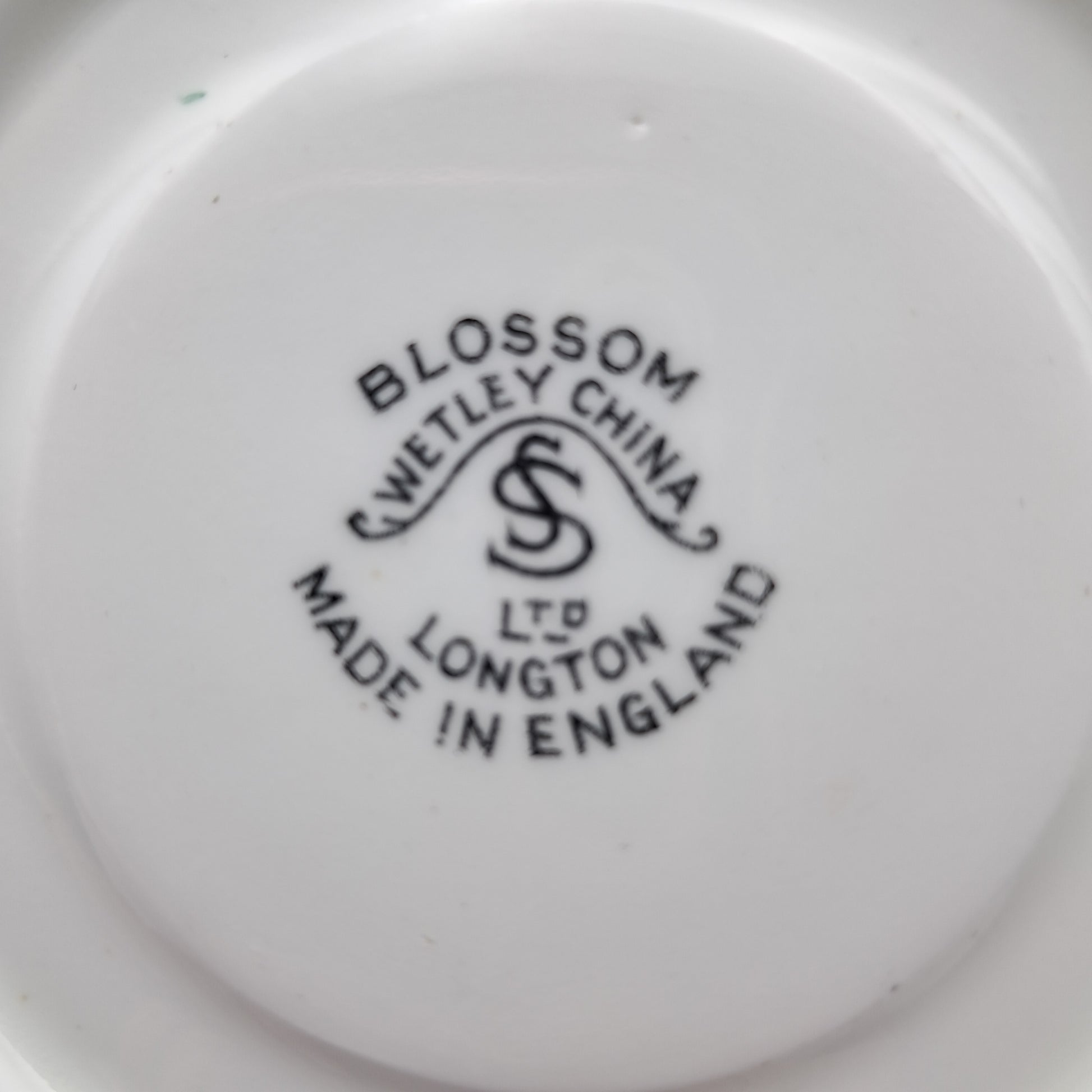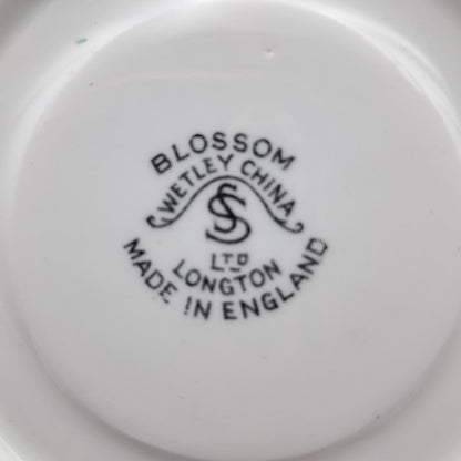 Antique Sampson Smith Wetley China Rare Blossom 9444 Pattern Cup, Saucer and Side Plate Trio