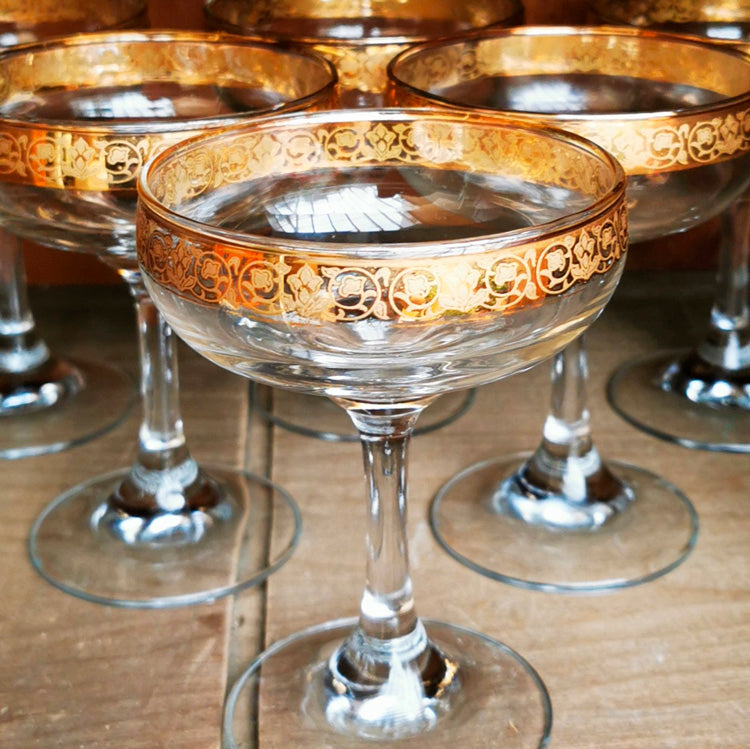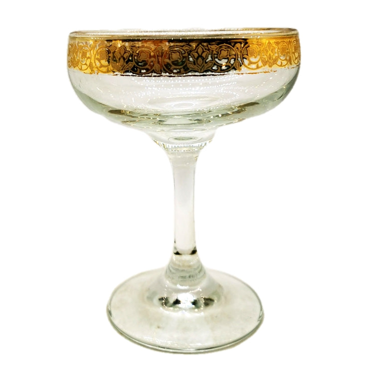 Set of 6 Vintage Gilt Rimmed Glass Champagne Coupe