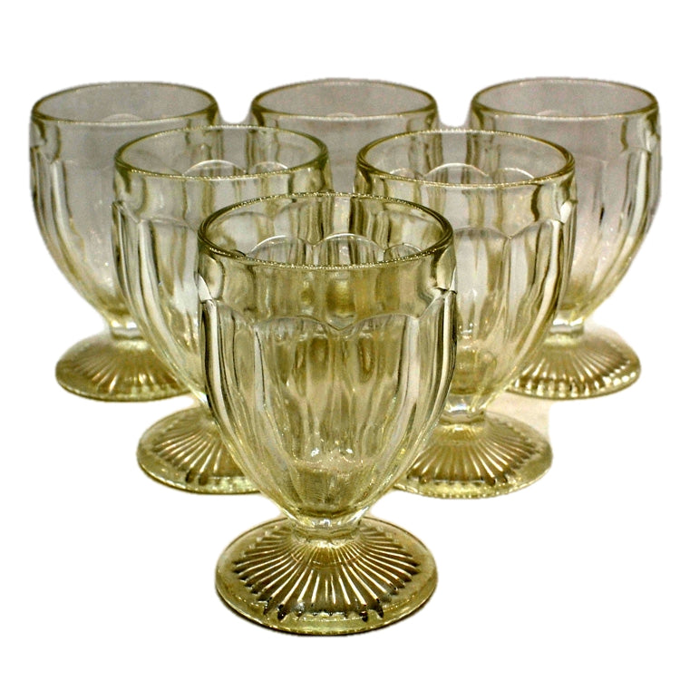 - 10 sided short-stemmed sundae glasses with decorated footplates