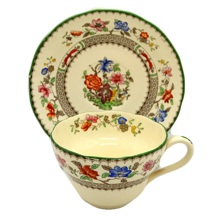 Spode China Chinese Rose Green Rim Breakfast Cup and Saucer