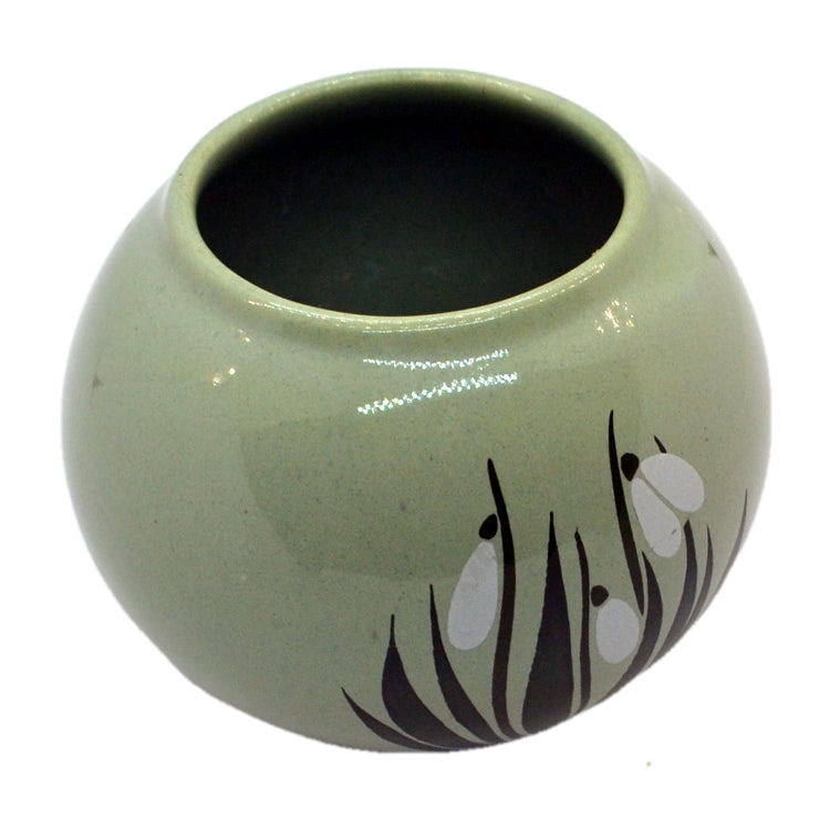 - Vintage pottery decorated olive green glaze snowdrop vase from the Holkham pottery in Norfolk