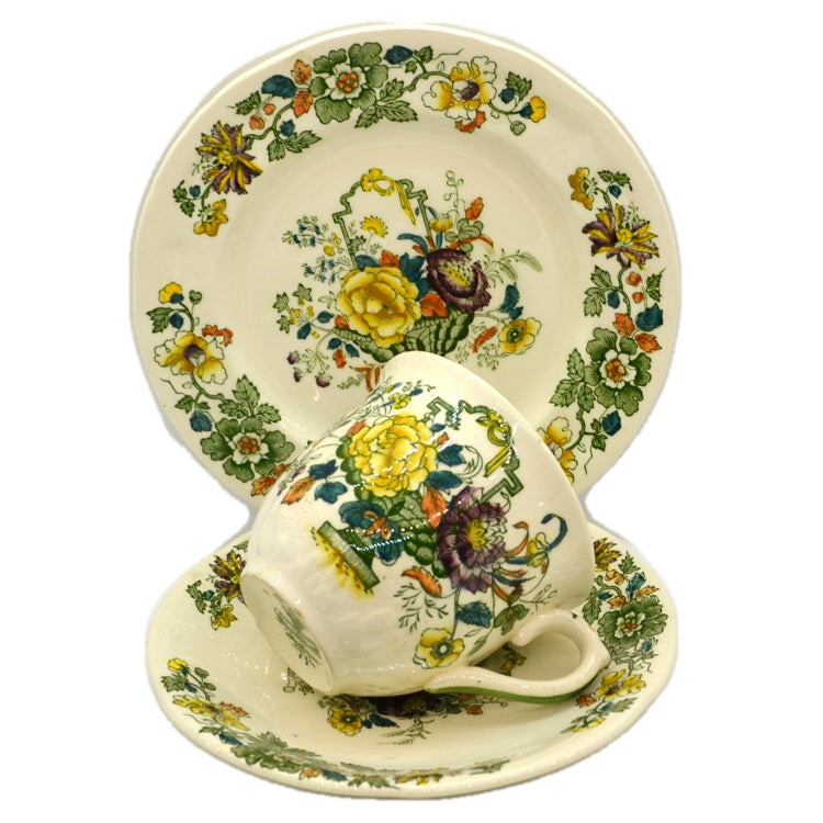 Vintage Masons Strathmore Green and Yellow Teacup Trio c1940-1950