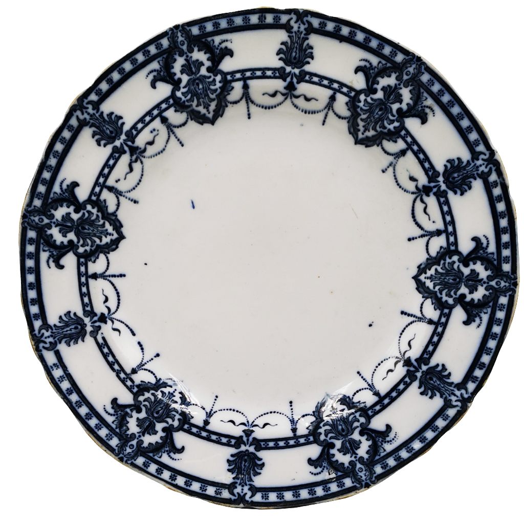- Antique Flow Blue regency pattern called Laurie.